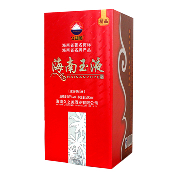 海南玉液酒是海南久之美酒業(yè)有限公司為海南本土市場量身定制的優(yōu)質(zhì)濃香型白酒,飲后或豪飲后均不上頭、不口干、身體恢復(fù)快。2012年被海南省工商局認(rèn)定為“海南省著名商標(biāo)”;2013年被海南省名牌產(chǎn)品認(rèn)定委員會授予為“2013年海南省名牌產(chǎn)品”稱號。該酒經(jīng)多位國家級和省級評酒專家品評,一致認(rèn)同海南玉液酒不亞于“五糧液” 。該酒的包裝設(shè)計富有強(qiáng)烈時代氣息和濃厚地方特色,創(chuàng)造性地采用了“要想身體好常來海南島”宣傳海南的流行語,溶匯了海南文化元素,適宜接待應(yīng)酬及做饋贈禮品,是海南...[更多內(nèi)容]